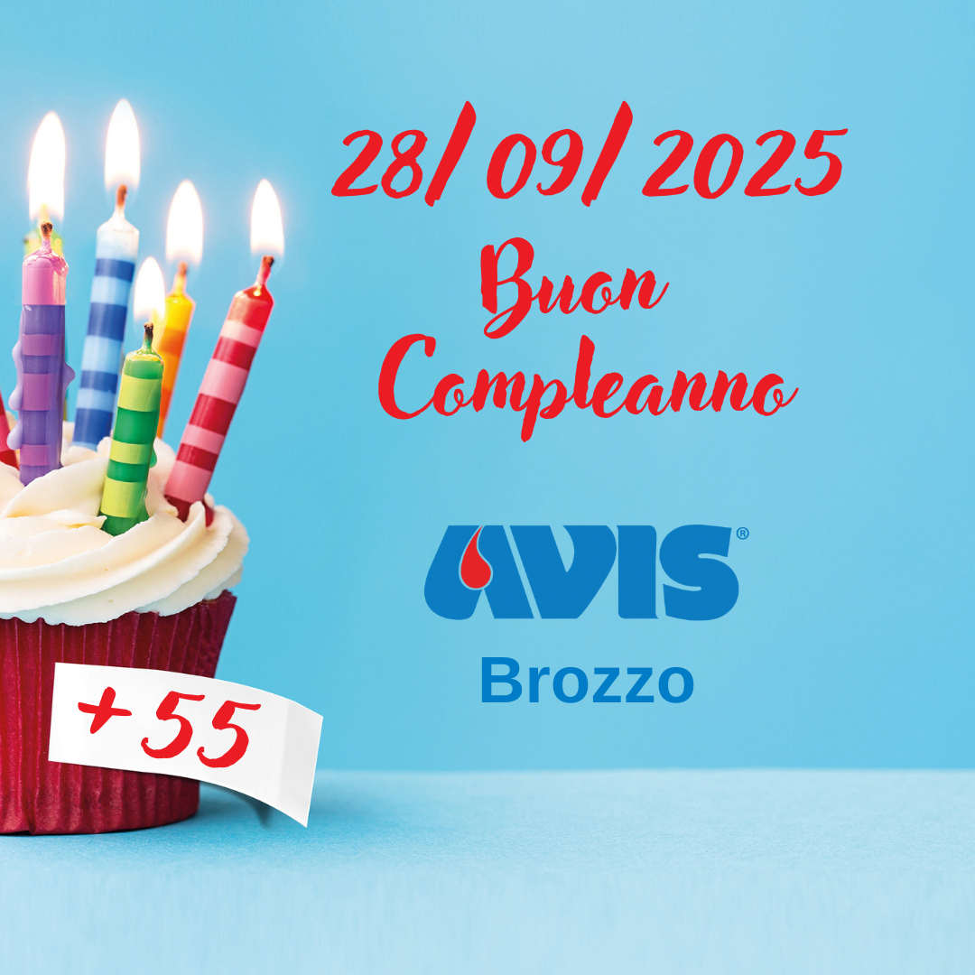 Domenica 28 settembre l'Associazione AVIS Brozzo compie 55 anni: dal 1970 a oggi, 2025, l'Associazione è attiva sul territorio Comunale nell'ambito della fondamentale scelta della donazione di sangue.