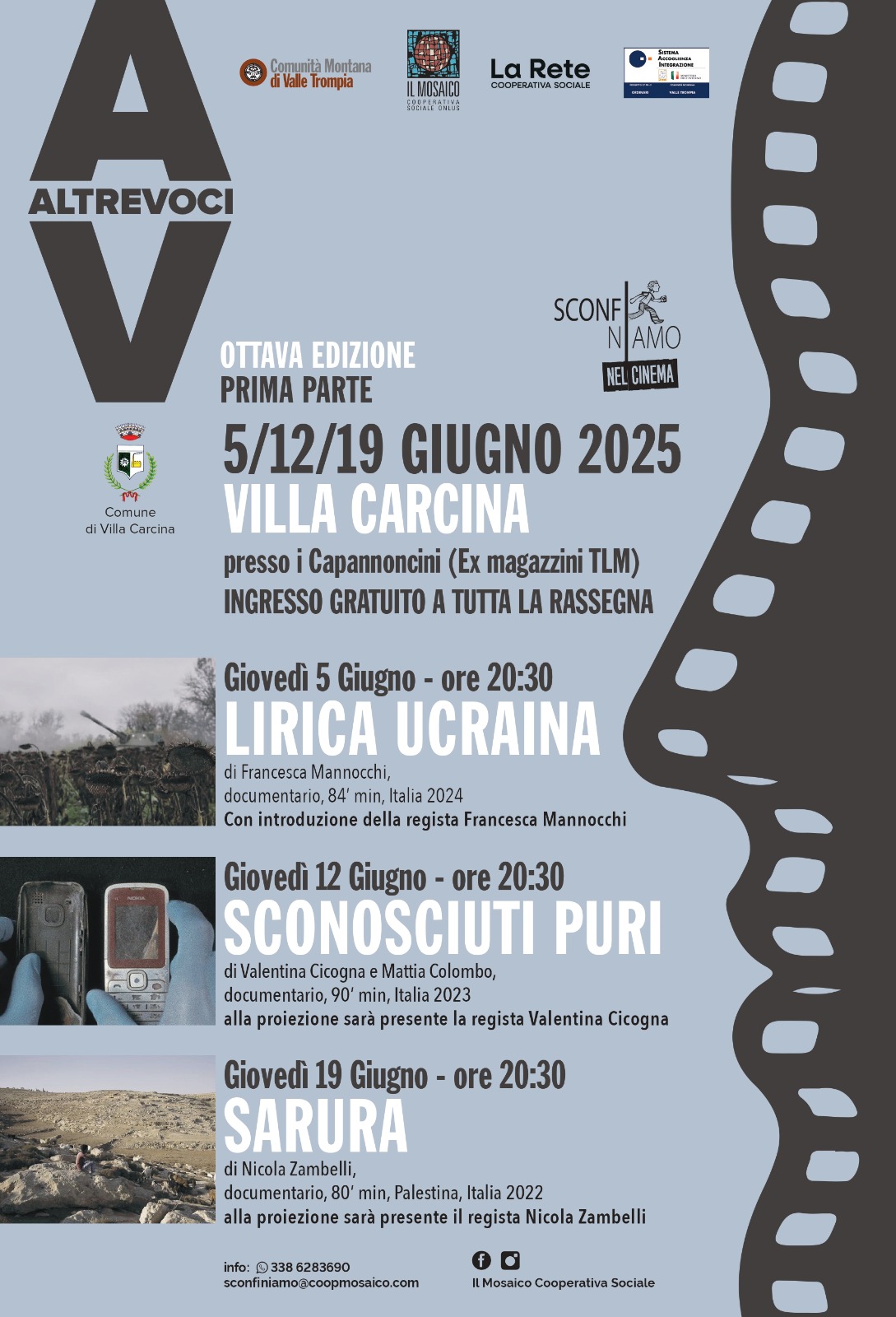 Il Mosaico Cooperativa Sociale e la Coop.la Rete, con il Patrocinio del Comune di Villa Carcina, propongono "Altre Voci": tre proiezioni a tema migrazione.