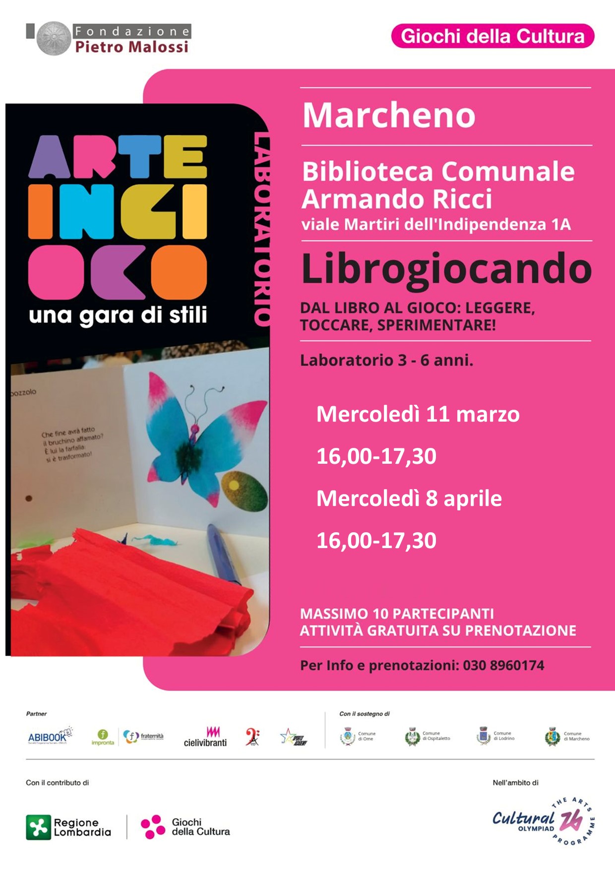 "Librogiocando" è un ciclo di quattro laboratori nei quali vi saranno esperienze di lettura partecipata. In questi incontri, infatti, i bambini e le bambine potranno osservare e allo stesso tempo provare, con le proprie mani, a sperimentare con i libri. I libri-gioco facilitano il coinvolgimento con la piccola lettrice e il piccolo lettore, facendoli interagire e stimolando la curiosità e l'apprendimento.