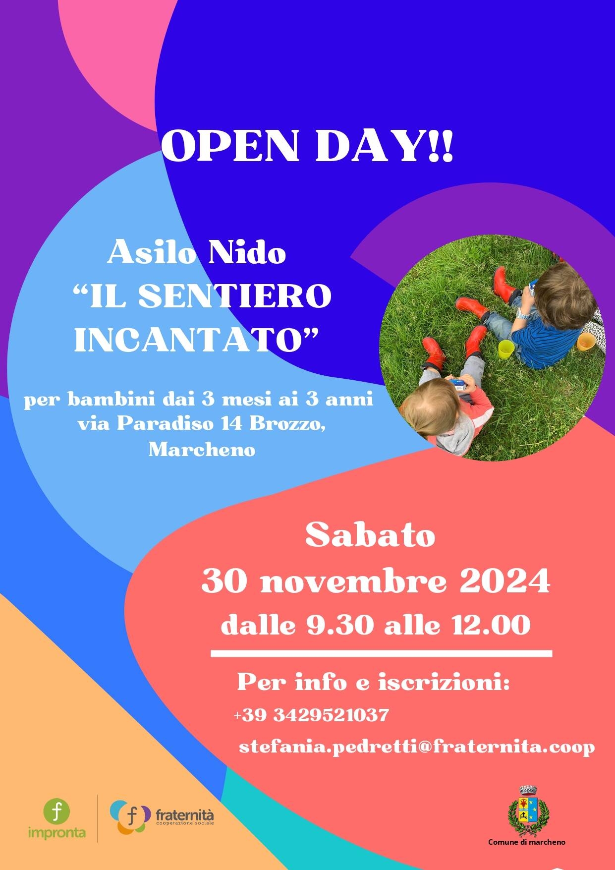 In data 29 novembre 2025, dalle 9:30 alle 12:00, si terrà un open day per l'asilo nido di Brozzo presso la sede dell'asilo in via Paradiso, n. 14.