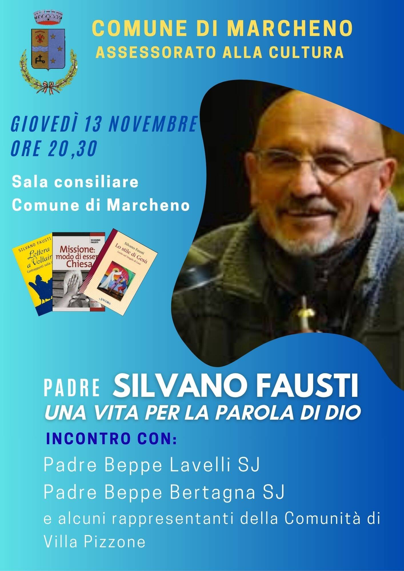 L'Assessorato alla Cultura organizza una serata dedicata alla memoria di Padre Silvano Fausti, gesuita marchenese tra i fondatori della Comunità di Villapizzone, sorta nel '78 nella periferia milanese.