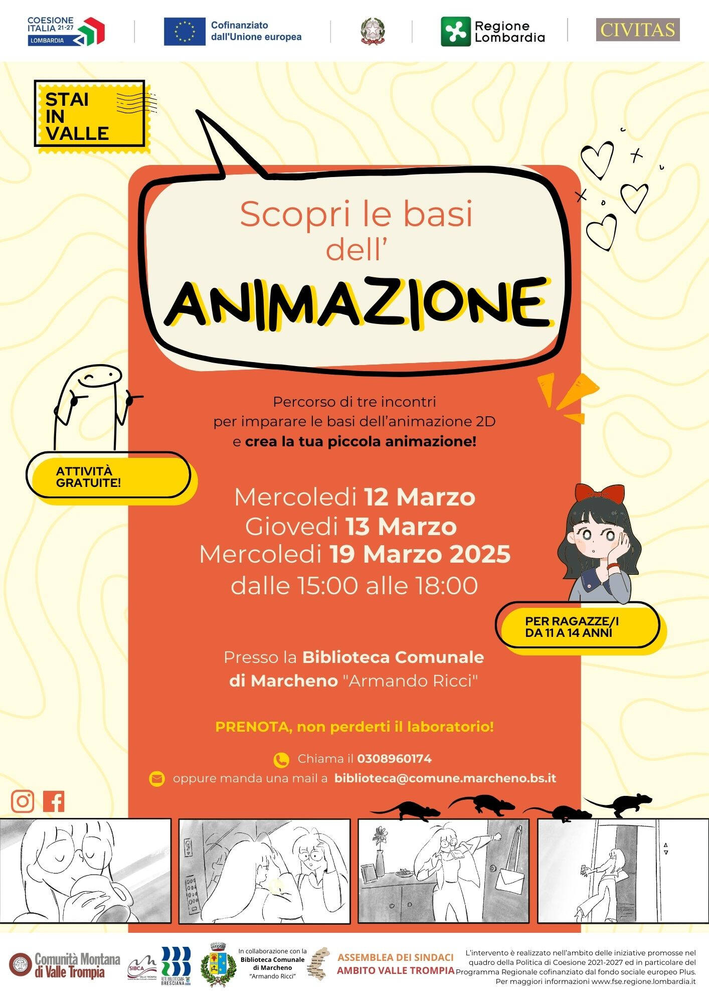 Presso la Biblioteca Comunale di Marcheno "Armando Ricci" ci sarà un ciclo di incontri per imparare le basi dell'animazione 2D e creare la propria piccola animazione.
