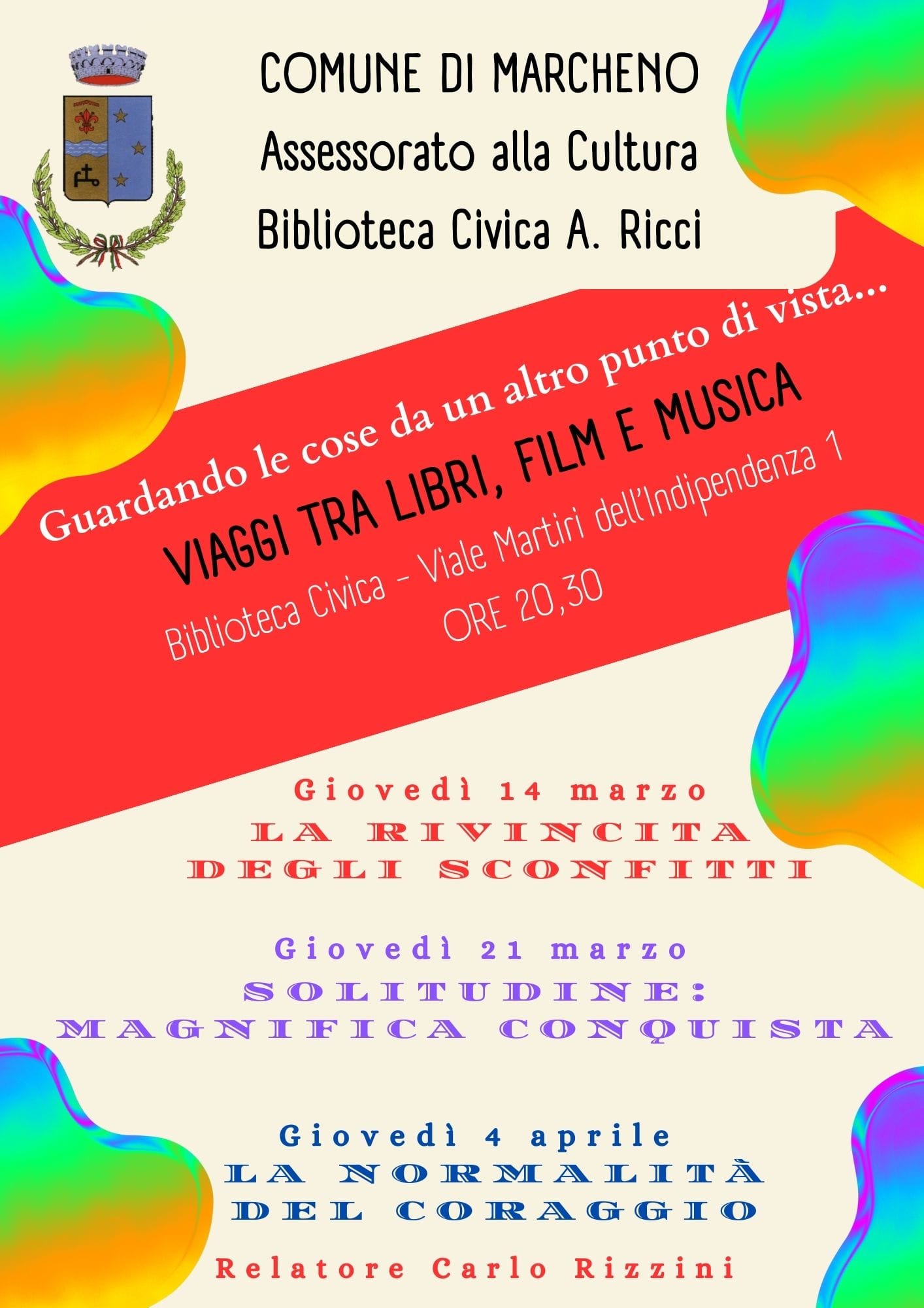 L'Assessorato alla Cultura del Comune di Marcheno propone un ciclo di incontri culturali, un viaggio tra libri, film e musica, legati dal filo rosso del tema della rivincita degli sconfitti.