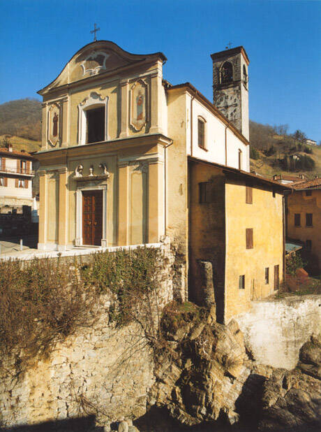 Situata nella frazione di Brozzo, la chiesa venne consacrata nel 1522 e ristrutturata nel XVIII secolo. Del 1743 l'Incoronazione della Madonna affrescata nel medaglione che sovrasta la cappella maggiore. Nei due medaglioni della volta della navata sono riprodotti l'Adorazione dei Magi e l'Adorazione dei Pastori. Al di sopra dell'altare marmoreo del '700 è posta una pala seicentesca che riproduce San Michele che lotta contro gli angeli ribelli. Al primo seicento è databile la tela ad olio firmata da Antonio Gambino raffigurante la SS. Trinità, S. Bernardo e S. Antonio.